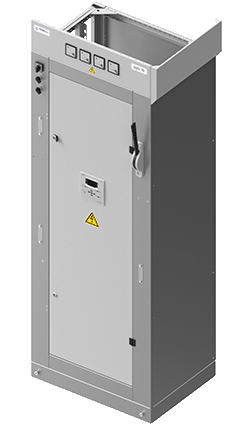 Обслуживание панелей одностороннее, все органы управления разъединителями, автоматическими выключателями, приборами и рубильниками осуществляется при помощи приводов на фасадной стороне шкафа при полностью закрытых дверях.