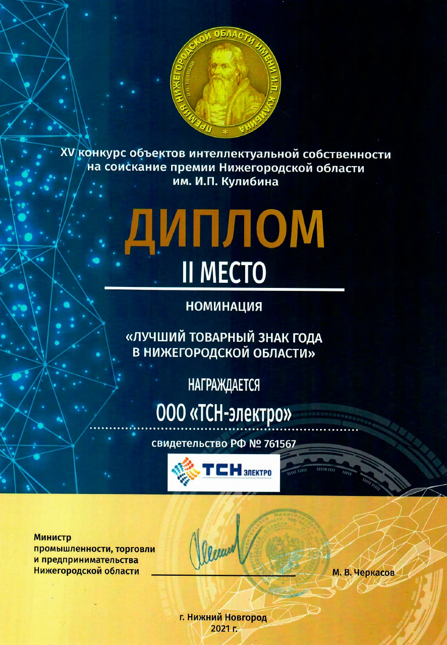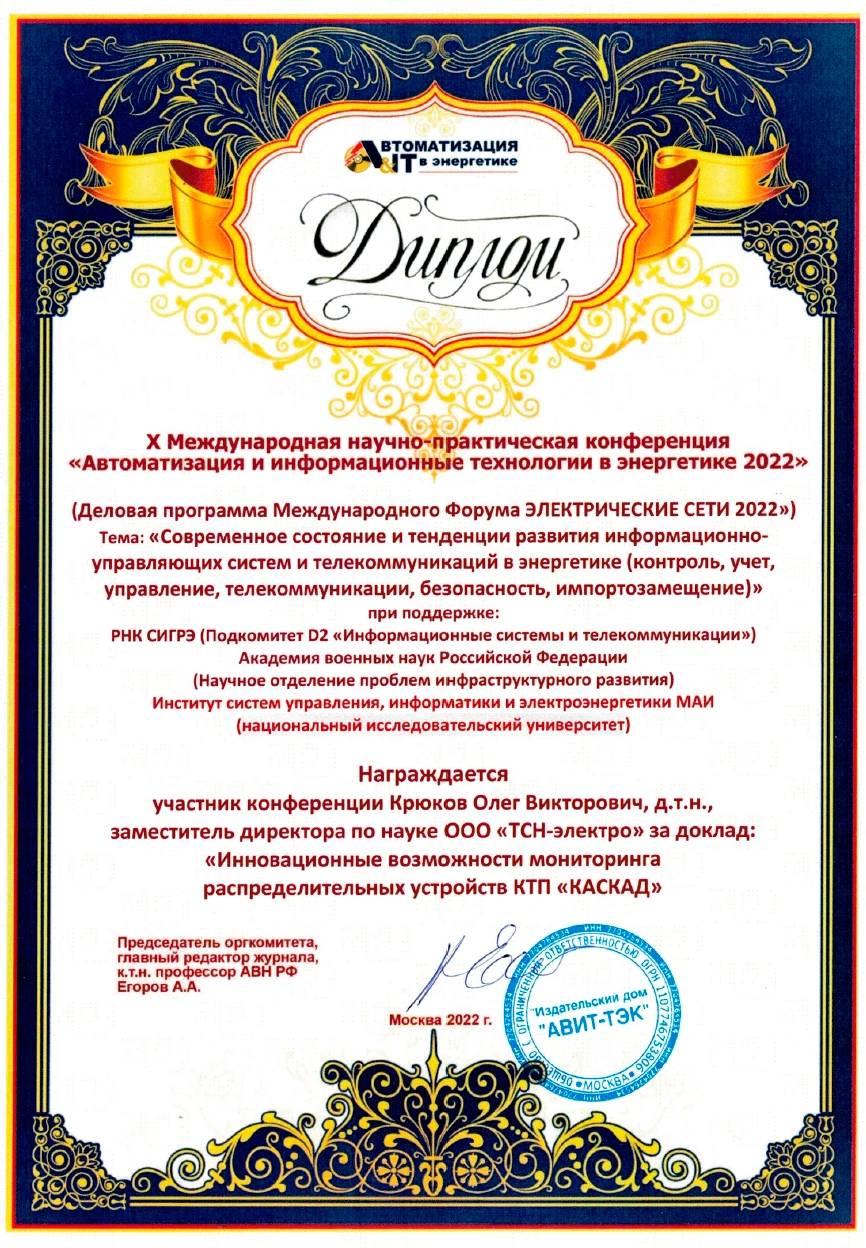 Диплом за доклад Инновационные возможности мониторинга распределительных устройств