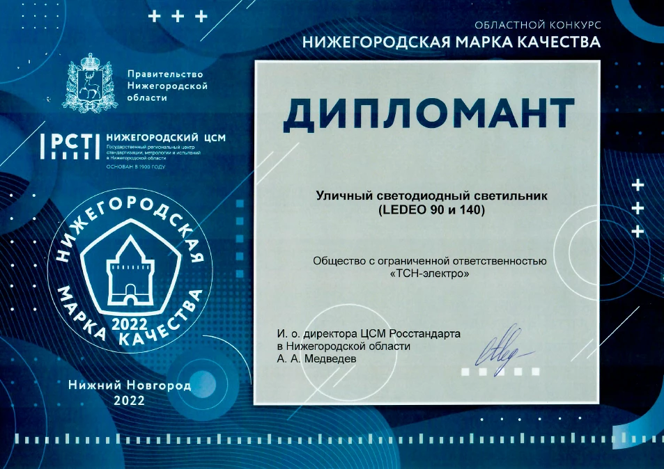 Дипломант 100 лучших товаров года (уличный светильник)