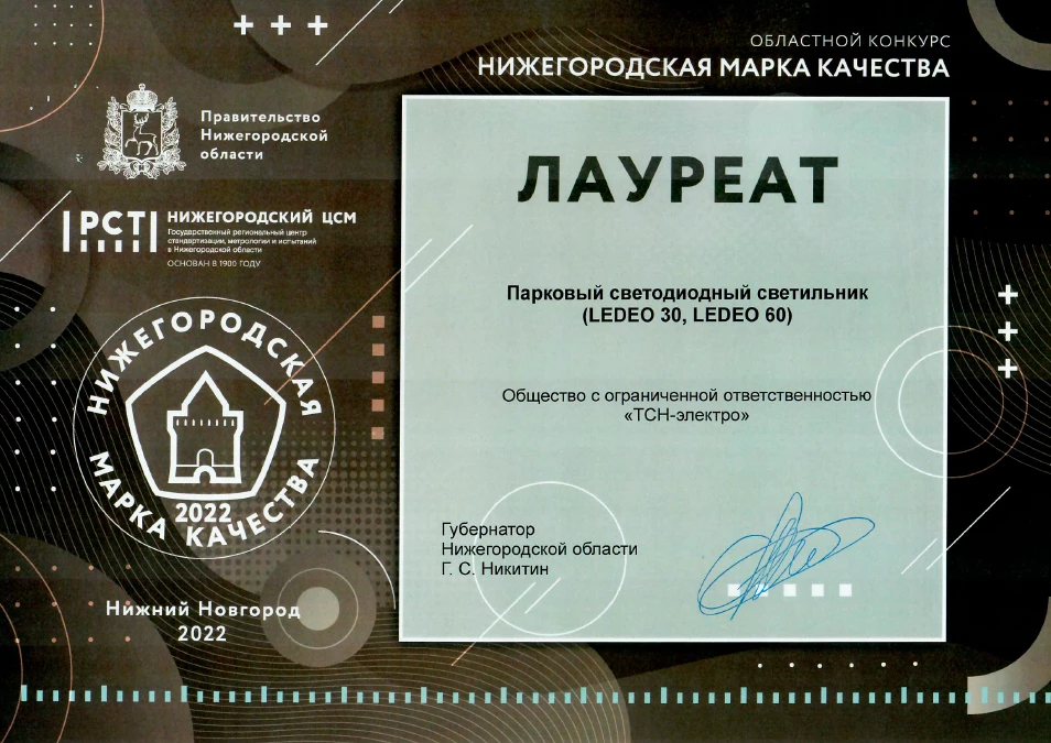 Лауреат 100 лучших товаров года (парковый светильник)