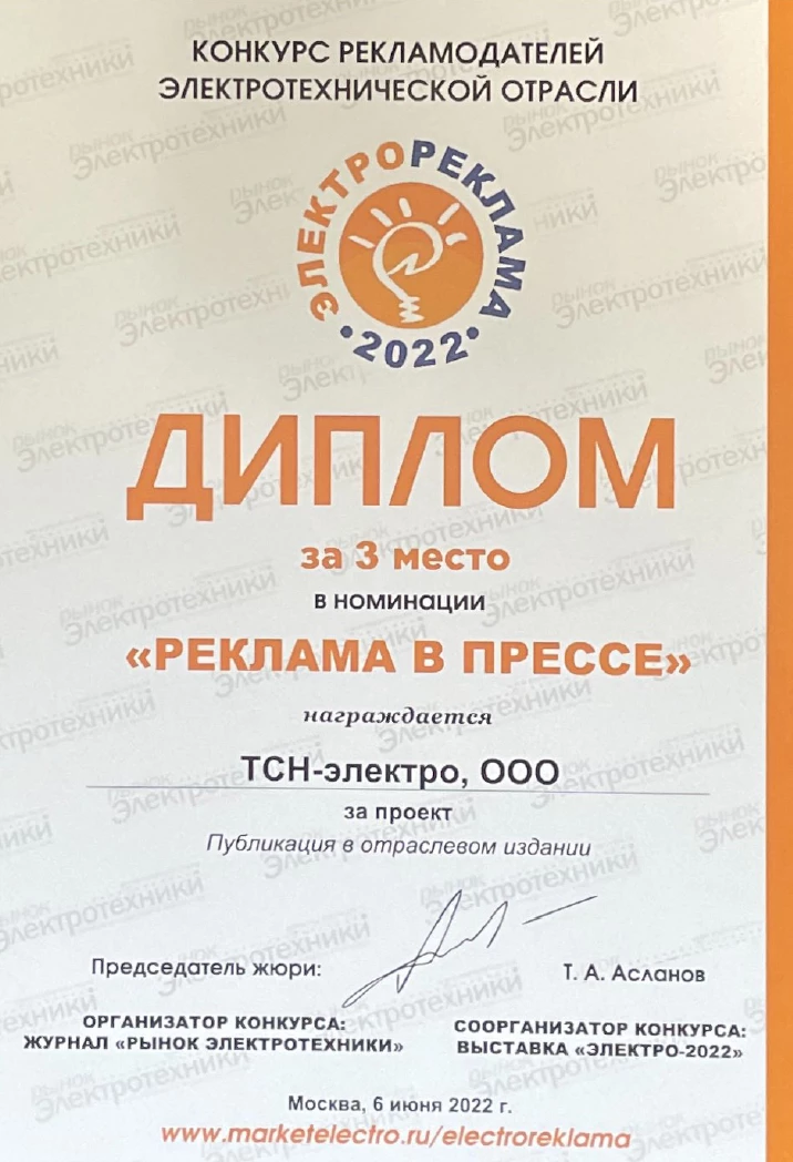 Диплом за 3-е место в конкурсе рекламы