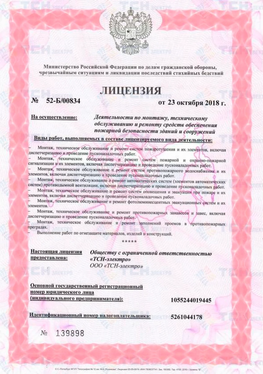 Лицензия на осуществление деятельности по монтажу, то, ремонту средств обеспечения пожарной безопасности зданий