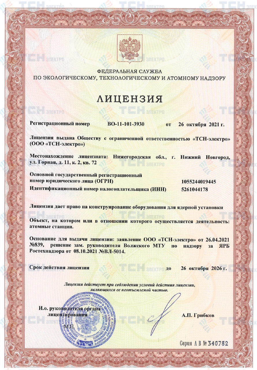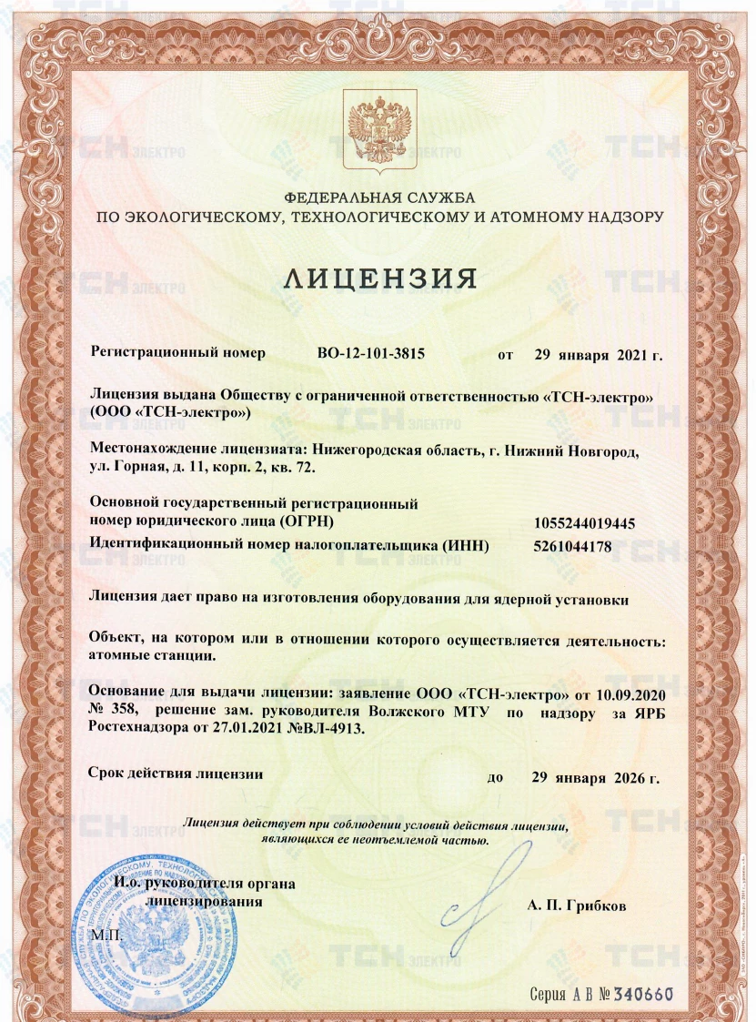 Лицензия на изготовление оборудования для ядерной установки