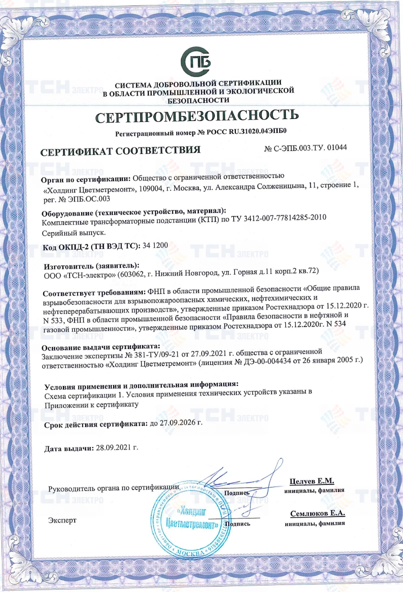 Сертификат соответствия КТП требованиям промбезопасности_лист 1