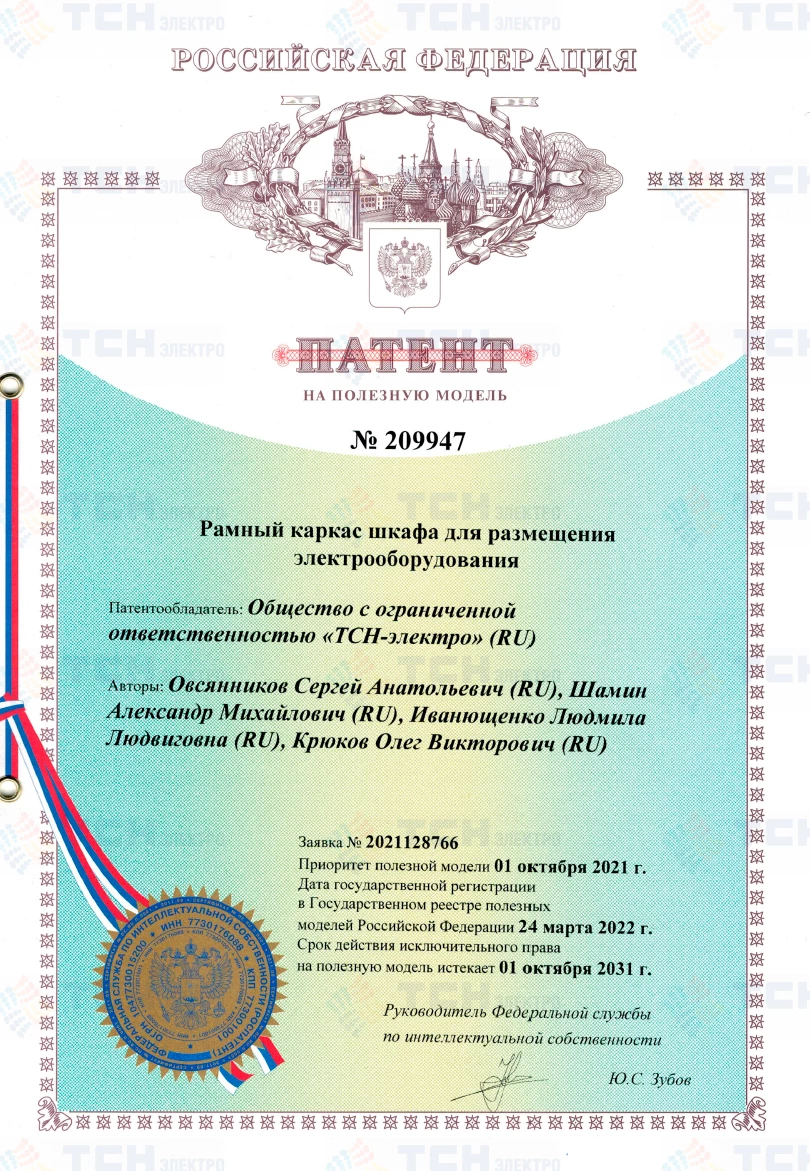 Патент на полезную модель «Рамный каркас шкафа для размещения электрооборудования»