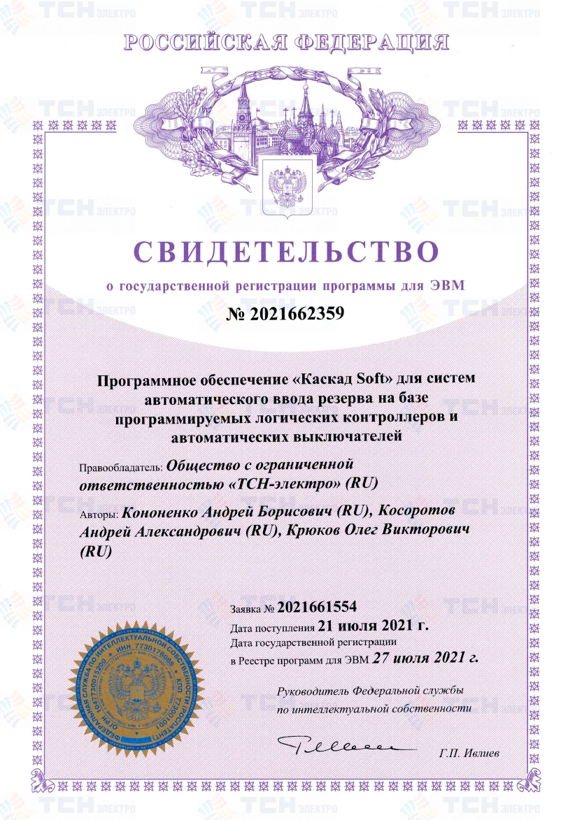Свидетельство на программное обеспечение «Каскад Soft»