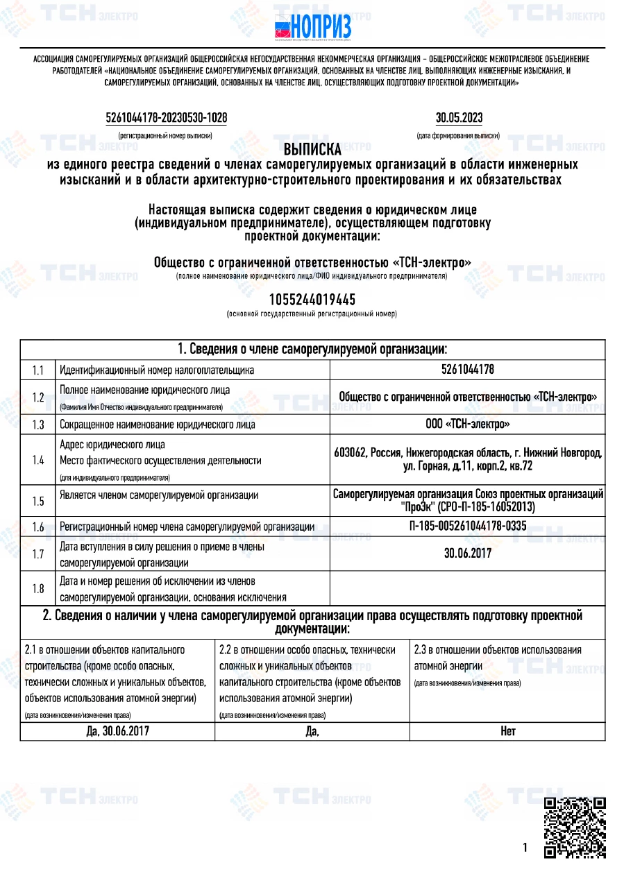 Выписка из реестра СРО (проектное)