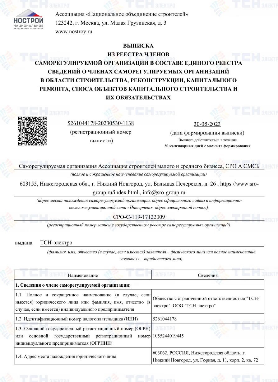 Выписка из реестра СРО (строительное)