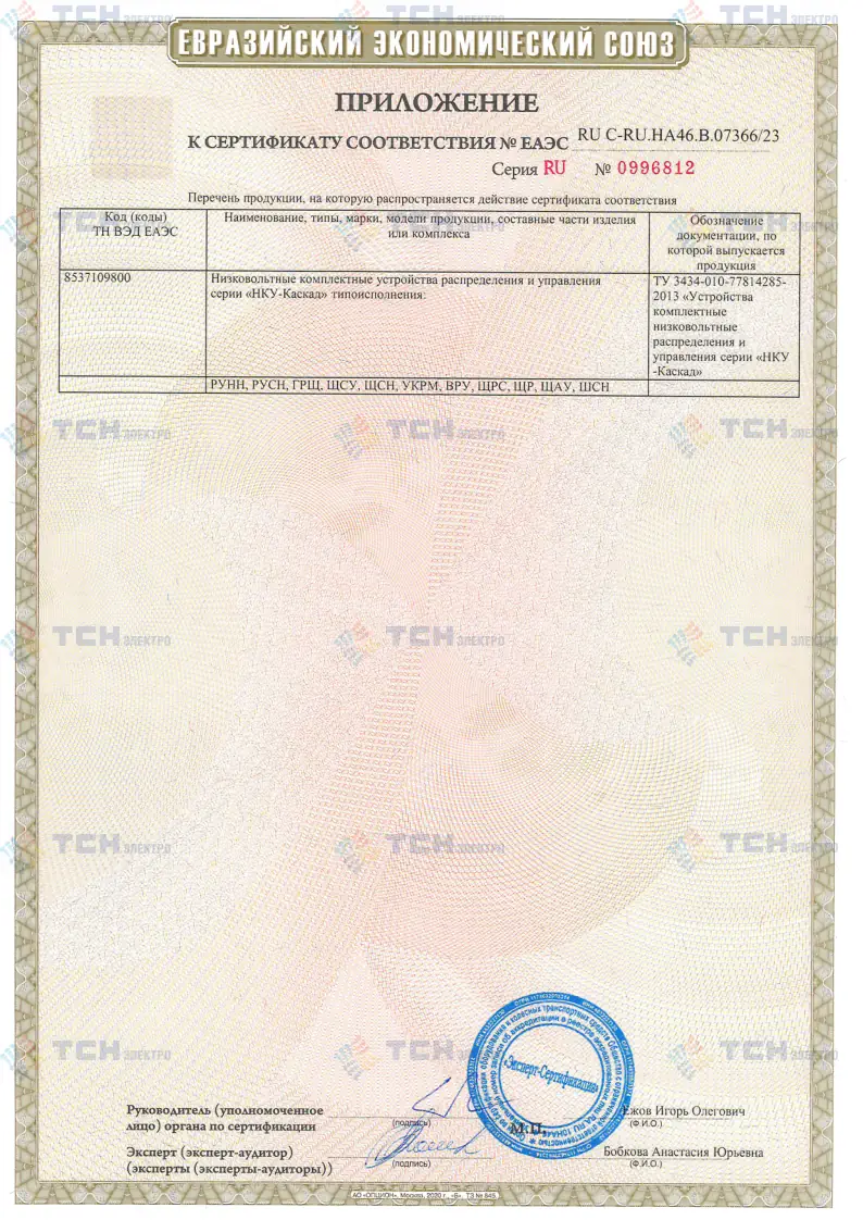 Сертификат соответствия НКУ-Каскад требованиям ТР ТС_лист 2