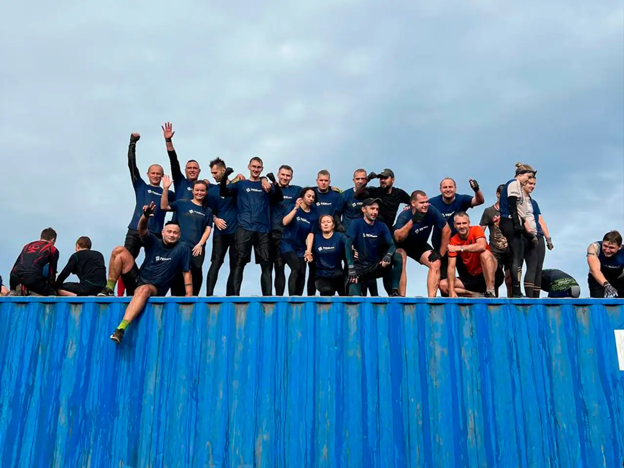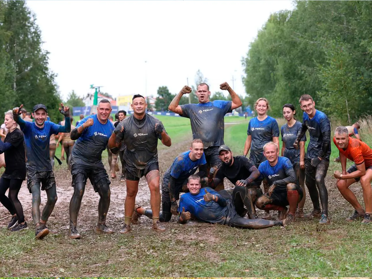 Наша команда сразилась с самым сложным и длинным маршрутом в 10 км. Участники преодолели более 25 уникальных препятствий на пути к финишу. Особенно им запомнились спуск, подъем в гору, грязные танцы и трамплин.