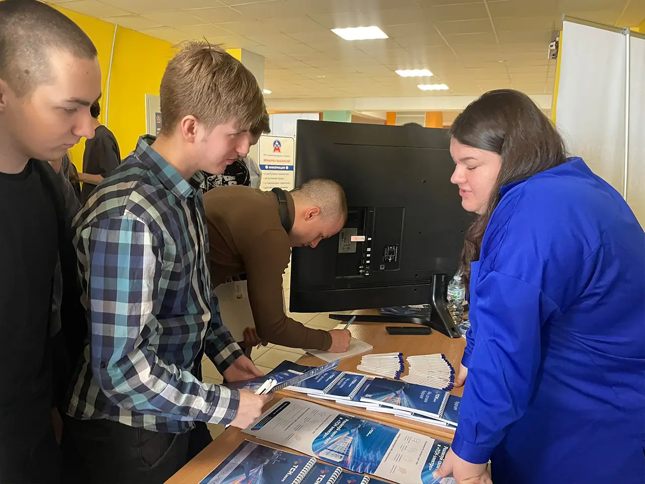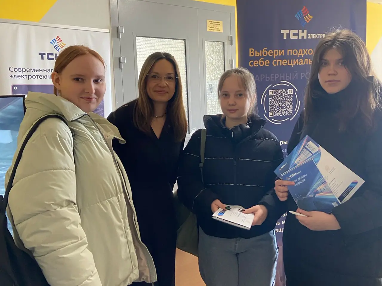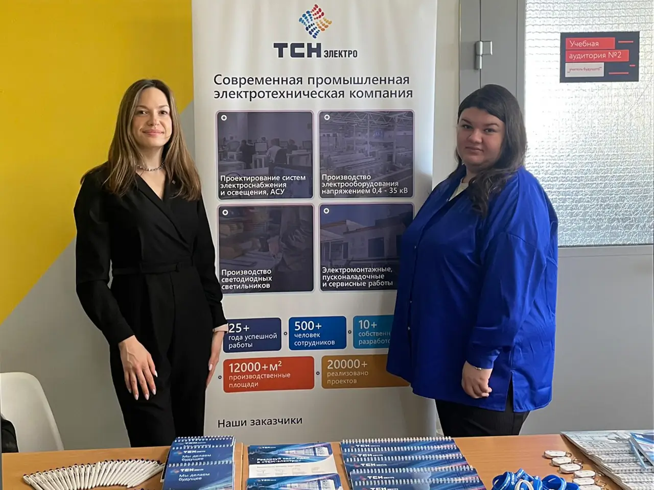 На стенде нашей компании сотрудники не только рассказали о предприятии, но и с помощью презентаций и видеороликов показали, какими интересными профессиями могут заниматься выпускники, а студентам раскрыли дополнительные плюсы прохождения практики у нас. Особенно приятным бонусом для компании стало окружение наших заказчиков, с которыми мы успешно сотрудничаем уже много лет. Поэтому студентам было легко и доступно прямо на месте продемонстрировать референции и масштаб работы «ТСН-электро».